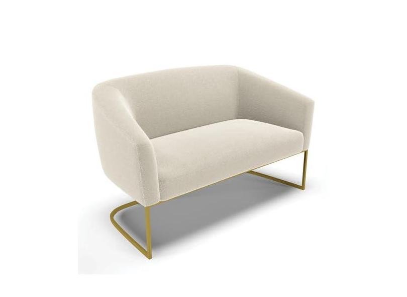 Sofá Namoradeira 2 Lugares Base Industrial Dourado Stella Bouclê Bege D03 - D'Rossi