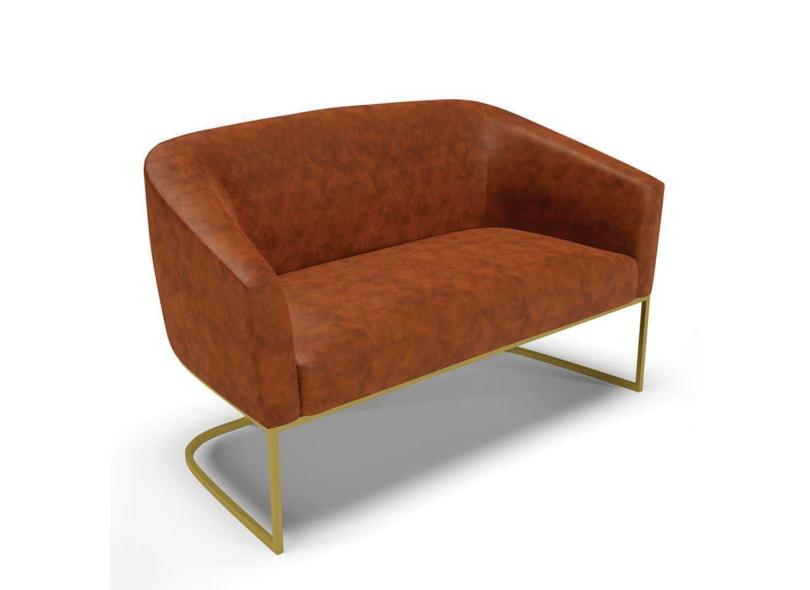 Sofá Namoradeira 2 Lugares Base Industrial Dourado Stella Corano D03 - D`rossi Cor Nozes