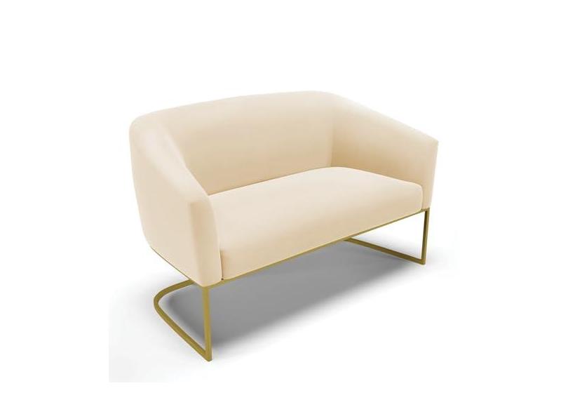 Sofá Namoradeira 2 Lugares Base Industrial Dourado Stella Suede Bege D03 - D'Rossi