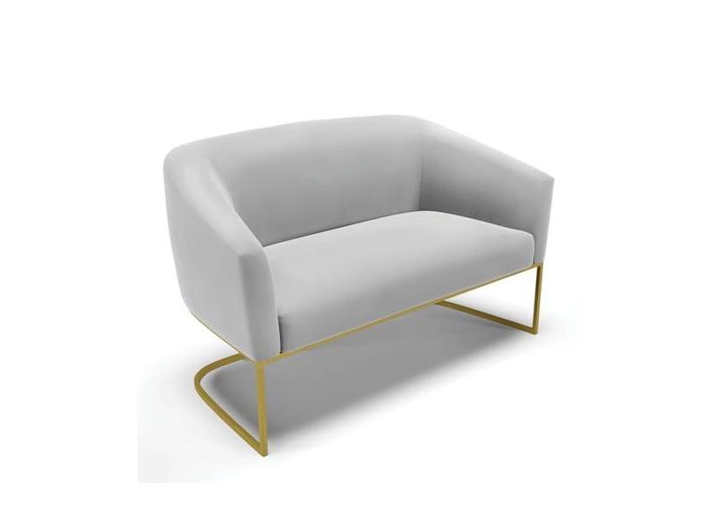 Sofá Namoradeira 2 Lugares Base Industrial Dourado Stella Suede Cinza D03 - D'Rossi
