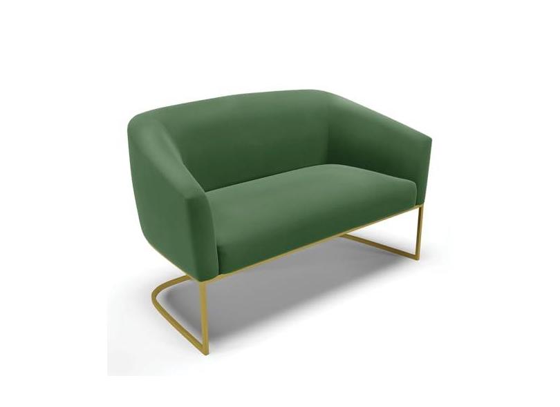 Sofá Namoradeira 2 Lugares Base Industrial Dourado Stella Suede Verde D03 - D'Rossi