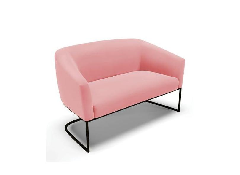 Sofá Namoradeira 2 Lugares Base Industrial Preto Stella Suede Rosê D03 - D'Rossi