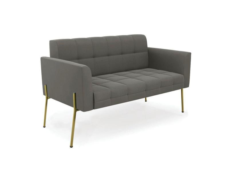 Sofá Namoradeira 2 Lugares Pé De Ferro Dourado Elisa Suede D03 - D'rossi Cor Grafite