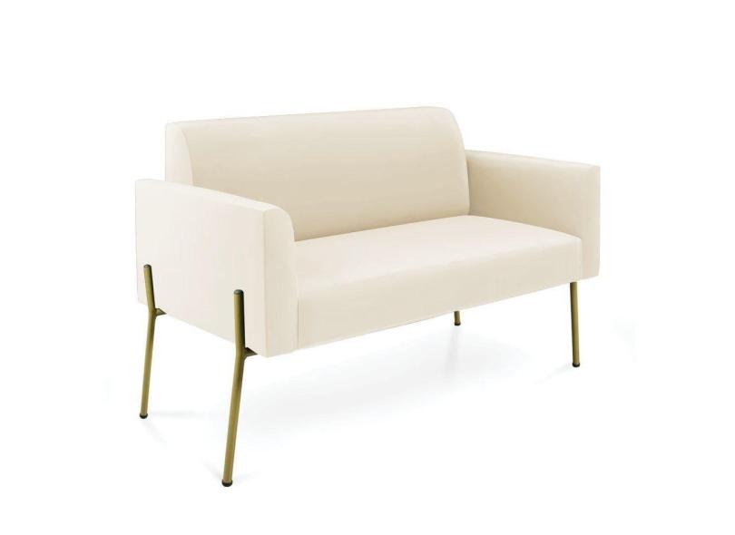 Sofá Namoradeira 2 Lugares Pé De Ferro Dourado Marisa Veludo Bege D03