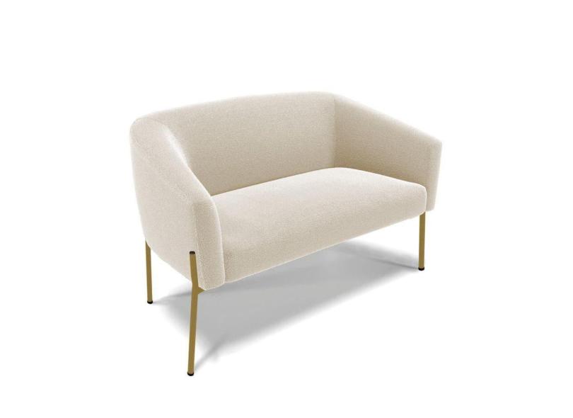 Sofá Namoradeira 2 Lugares Pé Ferro Dourado Stella Bouclê D03 - D`rossi Cor Bege
