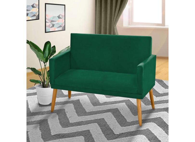 Sofá Namoradeira 2 Lugares Pés Retrô Suede Verde
