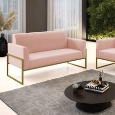 Sofá Namoradeira Base Industrial Alta Dourado Marisa Veludo Rosê D03 - D`Rossi