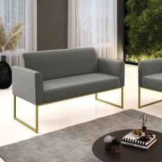Sofá Namoradeira Base Industrial Dourado Marisa Suede D03 - D'rossi