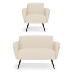 Sofá Namoradeira com Poltrona Pés Palito de Ferro Bruna Linho - D'Rossi