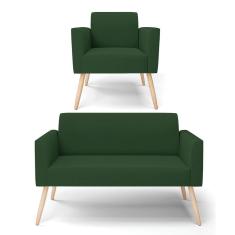 Sofá Namoradeira com Poltrona Pés Palito Natural Marisa Veludo Verde D03 - D'Rossi