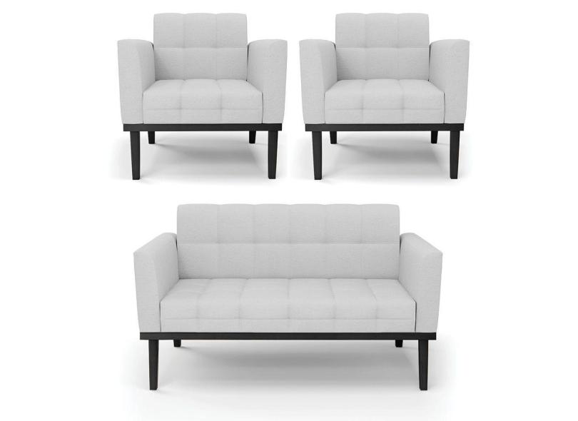 Sofá Namoradeira E 2 Poltronas Base De Madeira Preto Elisa Linho Cinza A05 D03 - D'rossi