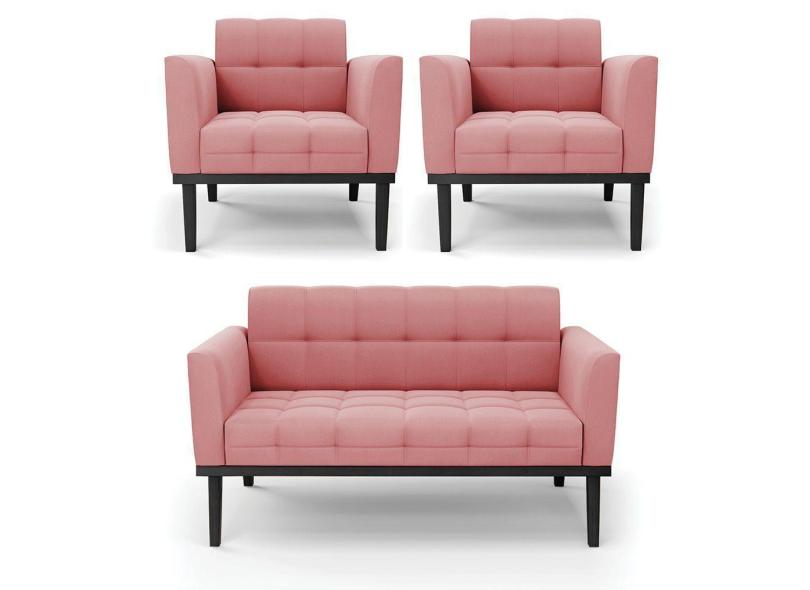 Sofá Namoradeira E 2 Poltronas Base De Madeira Preto Elisa Suede Rosê D03 - D'rossi