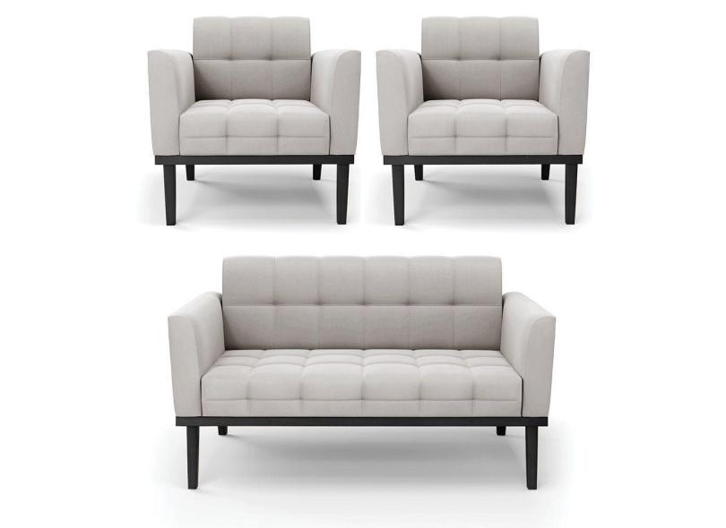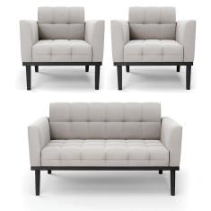Sofá Namoradeira E 2 Poltronas Base De Madeira Preto Elisa Veludo Cinza D03 - D'rossi