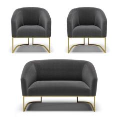 Sofá Namoradeira E 2 Poltronas Base Industrial Dourado Stella Bouclê D03 - D'rossi Cor Grafite
