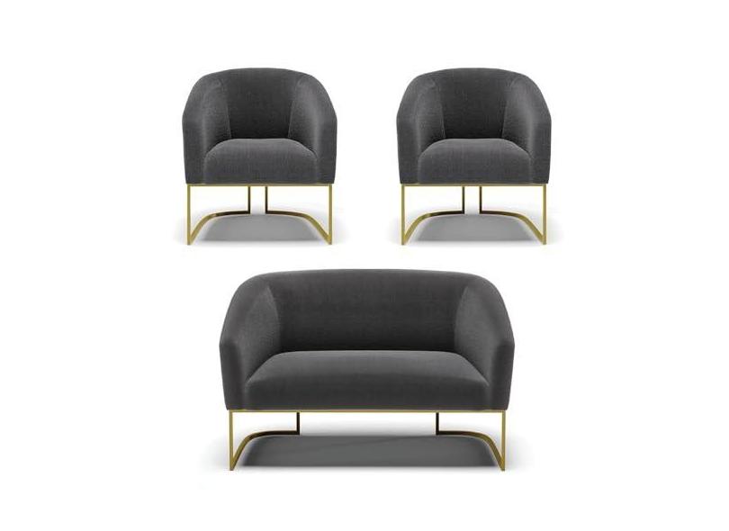O menor preço encontrado no Brasil para Sofá Namoradeira e 2 Poltronas Base Industrial Dourado Stella Bouclê Grafite D03 - D'Rossi atualmente é R$ 2.232,02.