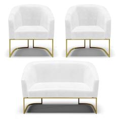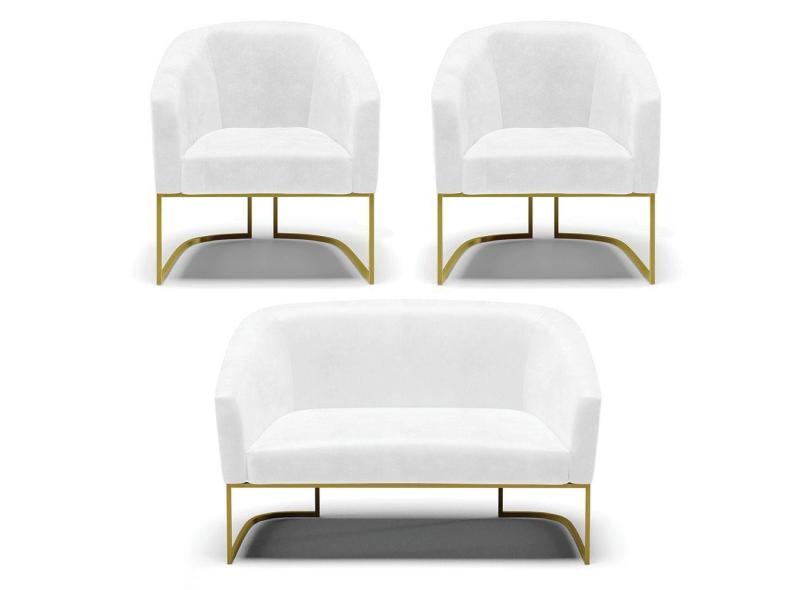 O menor preço encontrado no Brasil para Sofá Namoradeira E 2 Poltronas Base Industrial Dourado Stella Corano D03 - D'rossi Cor Branco atualmente é R$ 2.232,02.