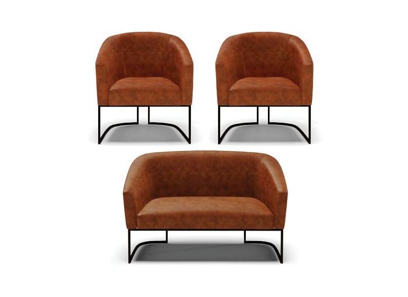 Sofá Namoradeira e 2 Poltronas Base Industrial Preto Stella Corano D03 - D'Rossi