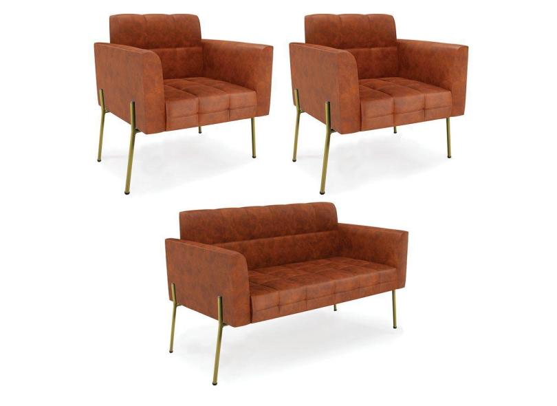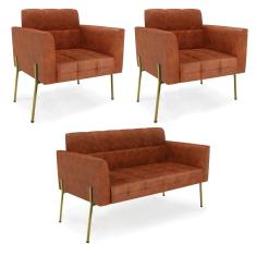 Sofá Namoradeira E 2 Poltronas Pé De Ferro Dourado Elisa Corano Nozes D03 - D'rossi