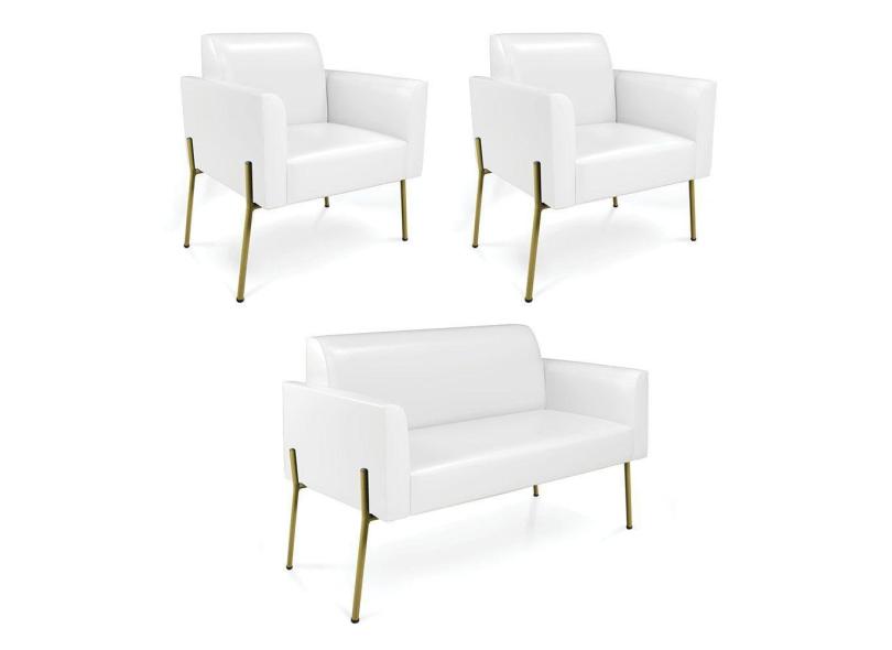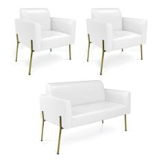 O menor preço encontrado no Brasil para Sofá Namoradeira e 2 Poltronas Pé de Ferro Dourado Marisa Corano Branco D03 - D`Rossi atualmente é R$ 2.161,90.