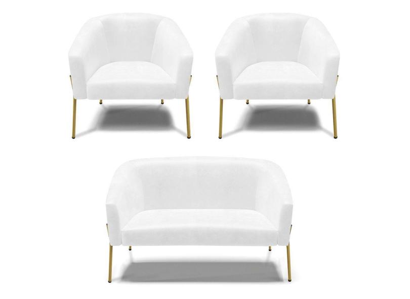 Sofá Namoradeira E 2 Poltronas Pé De Ferro Dourado Stella Corano D03 - D'rossi Cor Branco