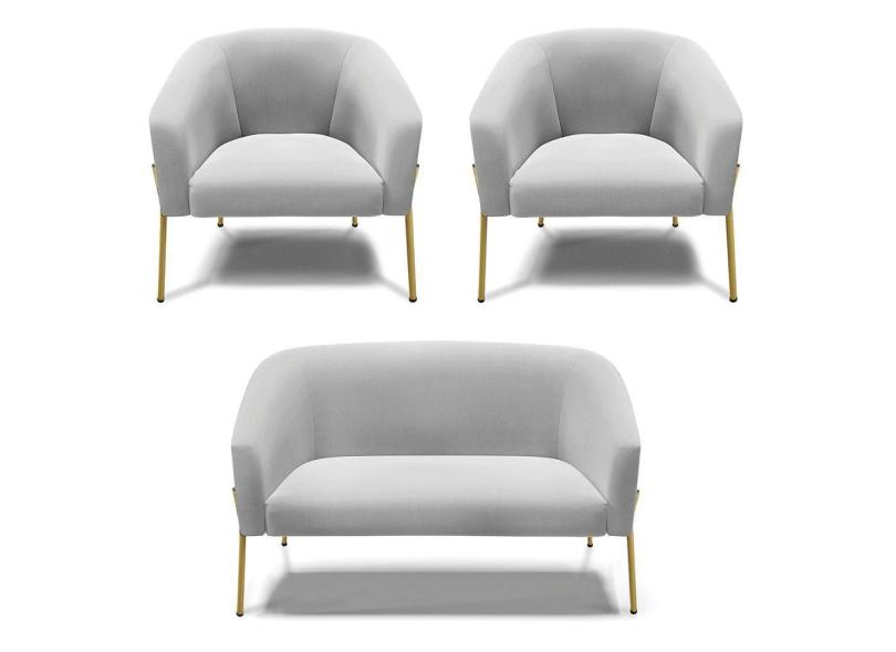 O menor preço encontrado no Brasil para Sofá Namoradeira E 2 Poltronas Pé De Ferro Dourado Stella Suede Cinza D03 - D'rossi atualmente é R$ 1.733,92.
