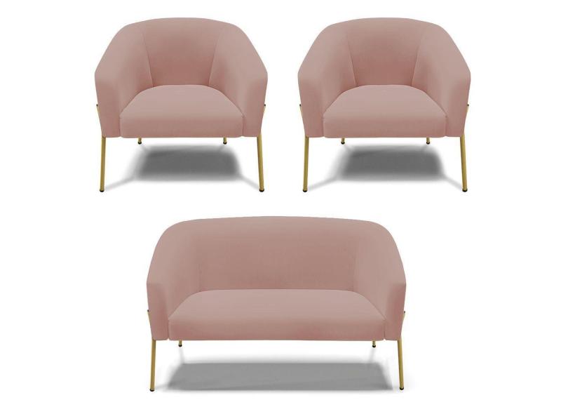 O menor preço encontrado no Brasil para Sofá Namoradeira E 2 Poltronas Pé De Ferro Dourado Stella Veludo Rosê D03 - D'rossi atualmente é R$ 1.812,96.
