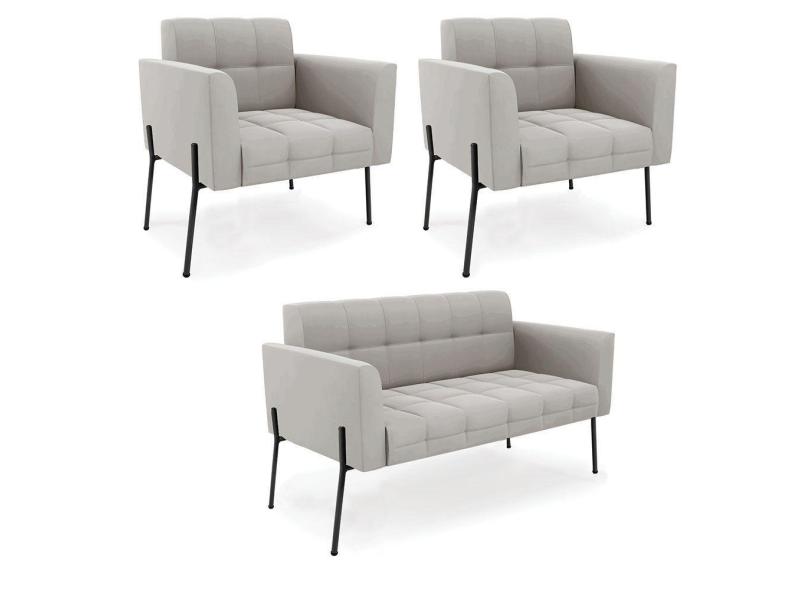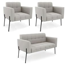 Sofá Namoradeira E 2 Poltronas Pé De Ferro Preto Elisa Veludo Cinza D03 - D'rossi