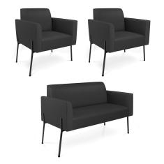 Sofá Namoradeira E 2 Poltronas Pé De Ferro Preto Marisa Corino Preto D03 - D`rossi