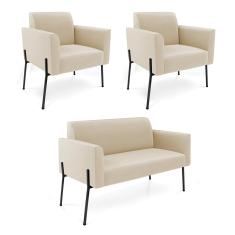 Sofá Namoradeira E 2 Poltronas Pé De Ferro Preto Marisa Suede Bege D03 - D'rossi