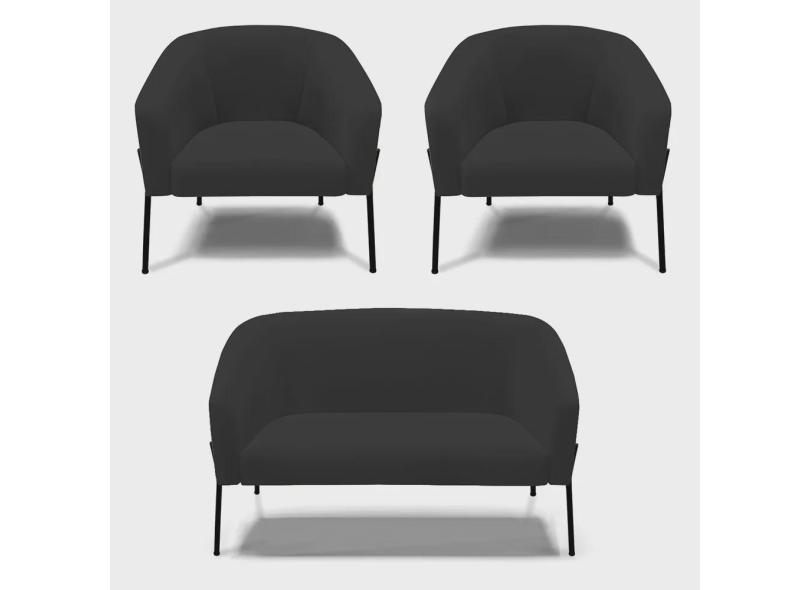 Sofá Namoradeira e 2 Poltronas Pé de Ferro Preto Stella Veludo Preto D03 - D'Rossi
