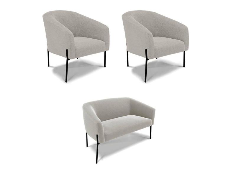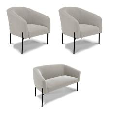Sofá Namoradeira E 2 Poltronas Pé Ferro Pto Stella Bouclê Cinza D03 - D`rossi