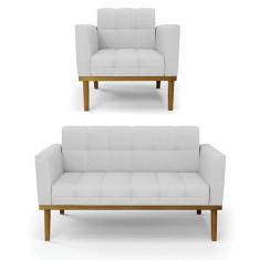 Sofá Namoradeira E Poltrona Base De Madeira Castanho Elisa Linho D03 - D'rossi Cor A05 Cinza