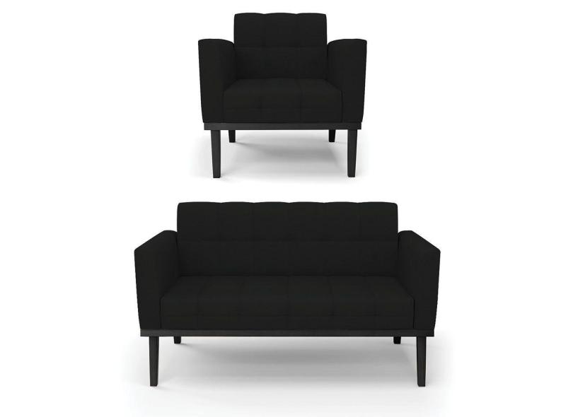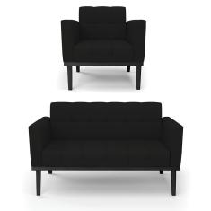 Sofá Namoradeira E Poltrona Base De Madeira Preto Elisa Linho D03 - D'rossi Cor A79 Preto