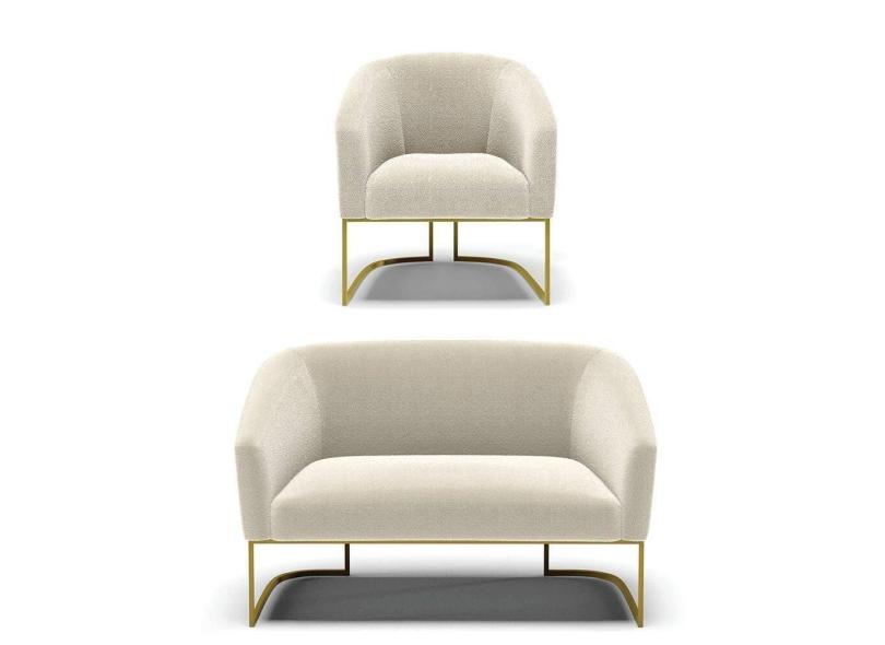 Sofá Namoradeira E Poltrona Base Industrial Dourado Stella Bouclê Bege D03 - D`rossi