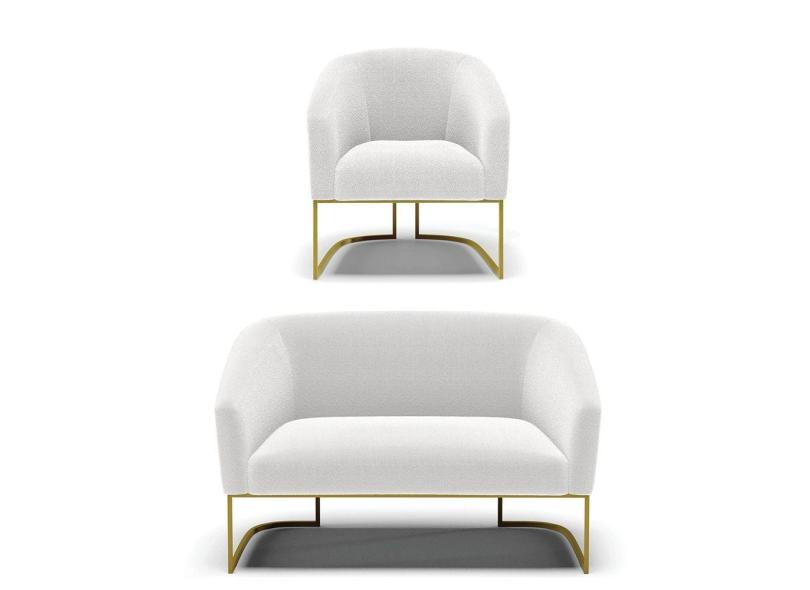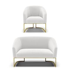 Sofá Namoradeira E Poltrona Base Industrial Dourado Stella Bouclê D03 - D'rossi Cor Off White