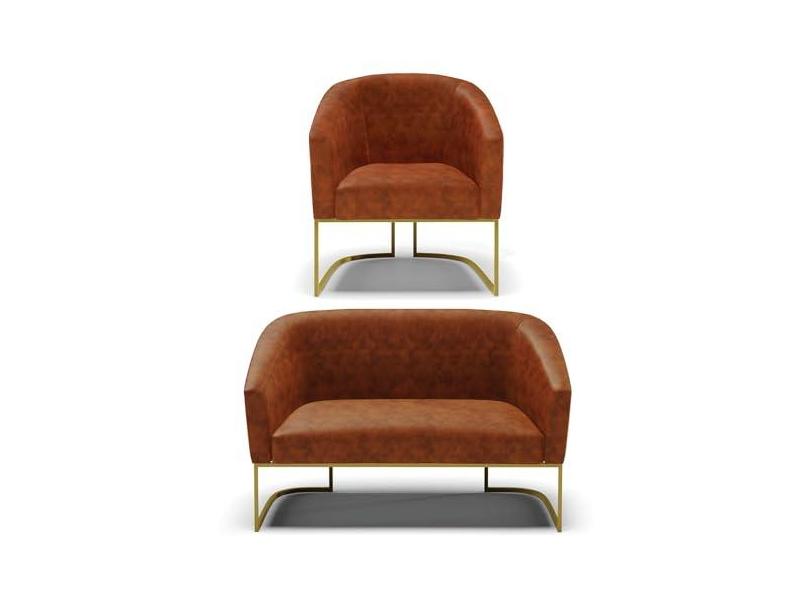 Sofá Namoradeira e Poltrona Base Industrial Dourado Stella Corano Nozes D03 - D'Rossi