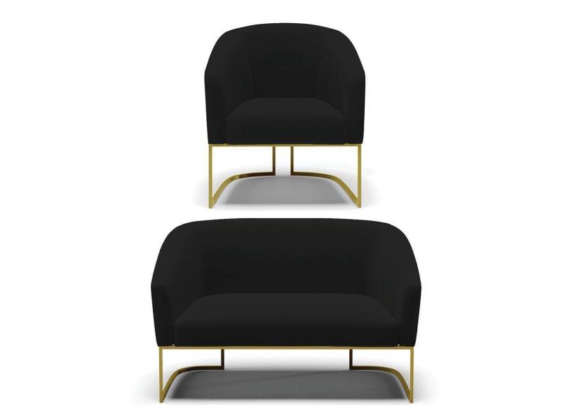 Sofá Namoradeira E Poltrona Base Industrial Dourado Stella Linho Preto A79 D03 - D'rossi