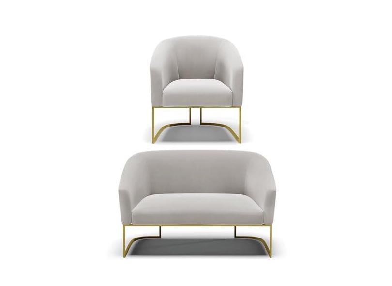 Sofá Namoradeira e Poltrona Base Industrial Dourado Stella Veludo D03 - D'Rossi