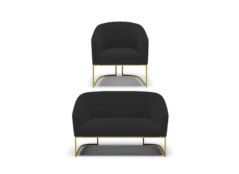 O menor preço encontrado no Brasil para Sofá Namoradeira e Poltrona Base Industrial Dourado Stella Veludo Preto D03 - D'Rossi atualmente é R$ 1.444,92.