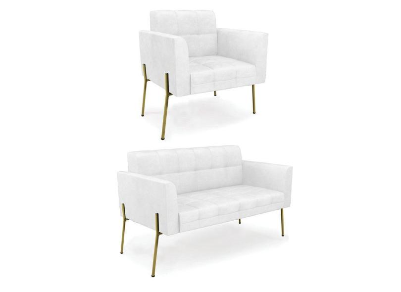 Sofá Namoradeira E Poltrona Base Pé De Ferro Dourado Elisa Corano Branco D03 - D'rossi