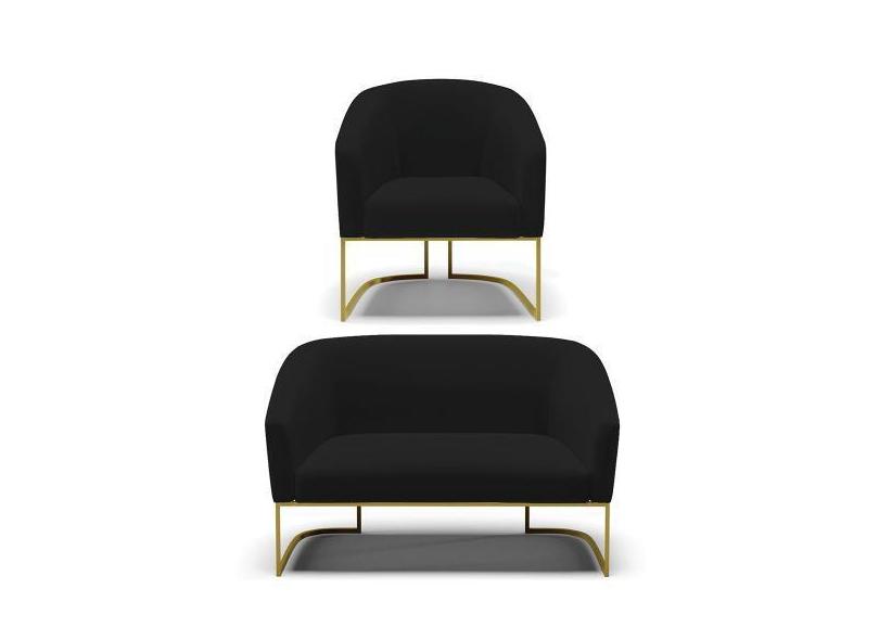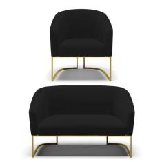 Sofá Namoradeira E Poltrona Industrial Dourado Stella Linho Preto D03