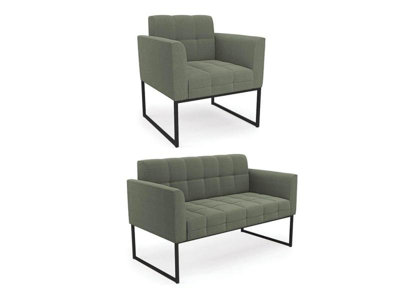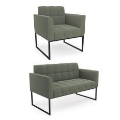 Sofá Namoradeira e Poltrona Industrial Preto Elisa Bouclê Menta D03 - D`Rossi