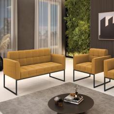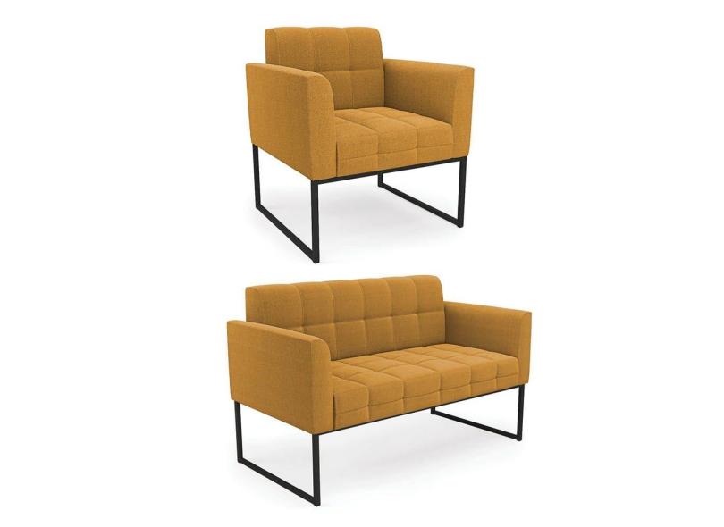 Sofá Namoradeira e Poltrona Industrial Preto Elisa Bouclê Mostarda D03 - D`Rossi
