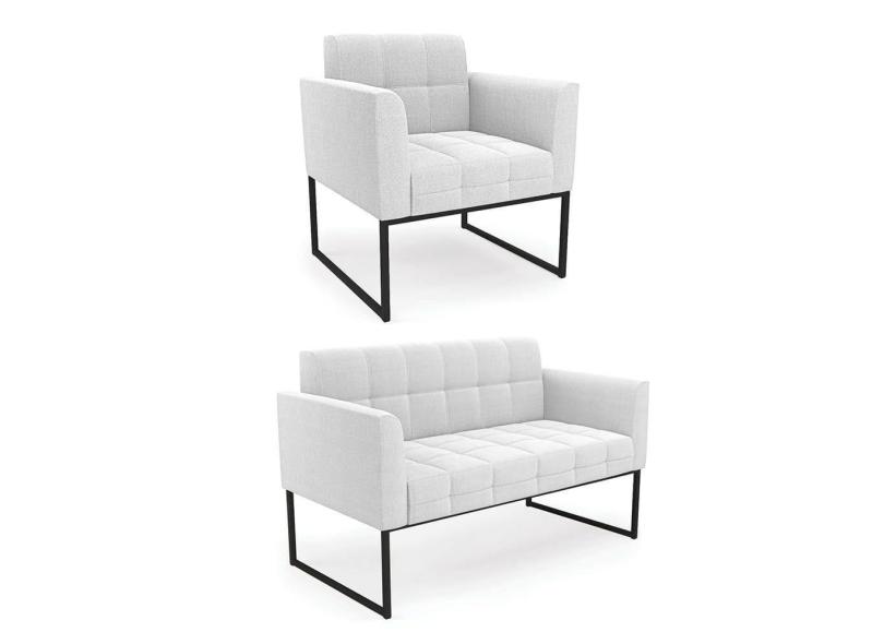 Sofá Namoradeira e Poltrona Industrial Preto Elisa Bouclê Off Wte D03 - D`Rossi