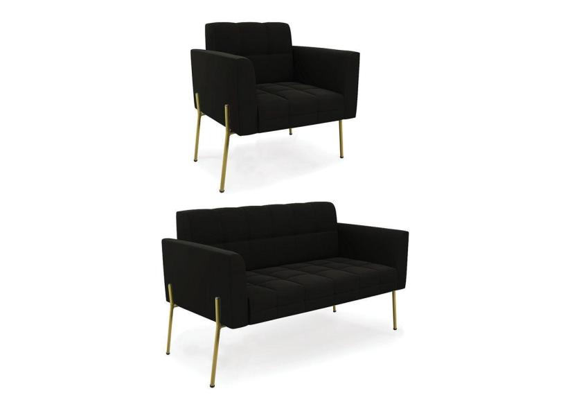 O menor preço encontrado no Brasil para Sofá Namoradeira E Poltrona Pé De Ferro Dourado Elisa Suede Preto D03 - D'rossi atualmente é R$ 2.424,51.