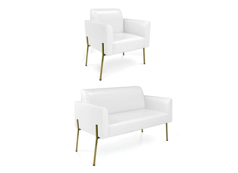 Sofá Namoradeira e Poltrona Pé de Ferro Dourado Marisa Corano Branco D03 - D`Rossi