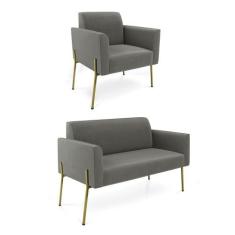 Sofá Namoradeira e Poltrona Pé de Ferro Dourado Marisa Suede D03 - D'Rossi