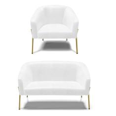 Sofá Namoradeira E Poltrona Pé De Ferro Dourado Stella Corano D03 - D'rossi Cor Branco