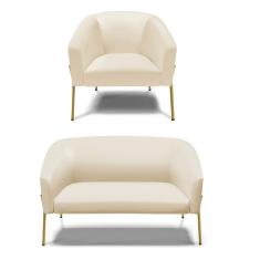 Sofá Namoradeira e Poltrona Pé de Ferro Dourado Stella Corino D03 - D'Rossi