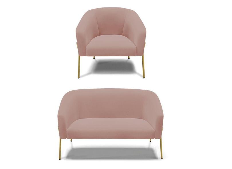 Sofá Namoradeira E Poltrona Pé De Ferro Dourado Stella Veludo D03 - D'rossi Cor Rose